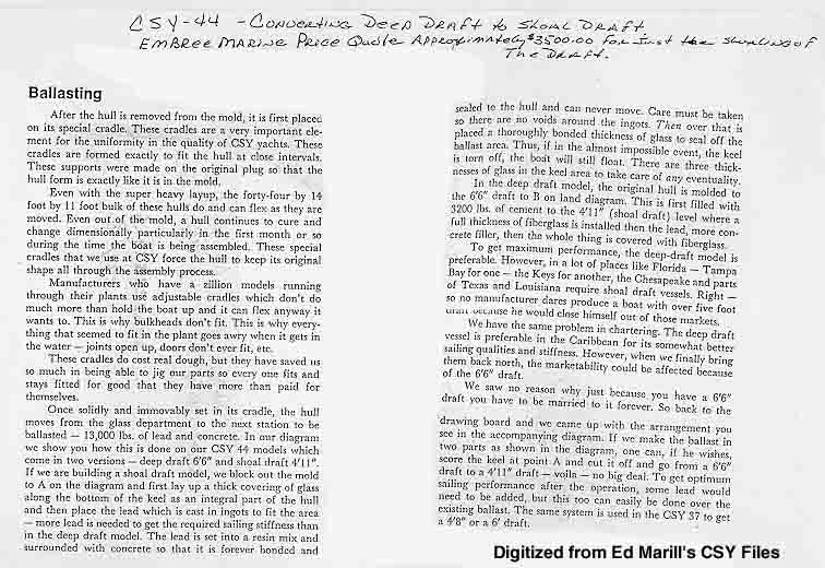 Below, we have digitized the information we found within our boat papers which documents the design and intended marketing reason for this dual draft design. Note that there is a written note about a quote from Embree Marine (unknown business or location) and a price quote of $3,500 for the conversion.